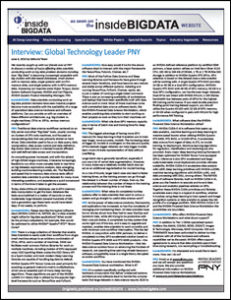 The following whitepaper download is a reprint of the recent interview with our friends over at PNY to discuss a variety of topics affecting data scientists conducting work on big data problem domains including how “Big Data” is becoming increasingly accessible with big clusters with disk-based databases, small clusters with in-memory data, single systems with in-CPU-memory data, and single systems with in-GPU-memory data. Answering our inquiries were: Bojan Tunguz, Senior System Software Engineer, NVIDIA and Carl Flygare, NVIDIA Quadro Product Marketing Manager, PNY.