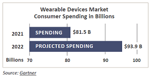 Those devices are tremendously popular. According to Gartner, consumers spent an estimated $81.5 billion on wearable devices in 2021. And in 2022, the market will likely grow to $93.9 billion.
