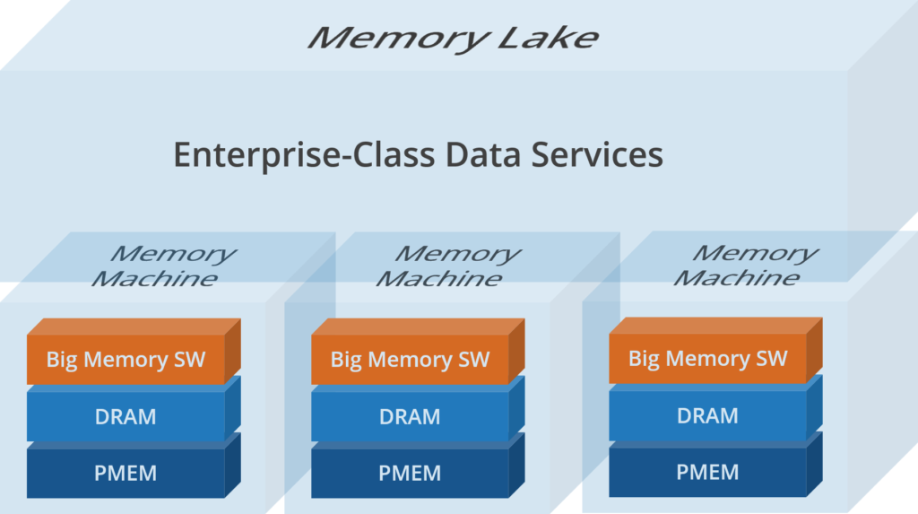 This new category of IT consists of DRAM and PMEM memory, plus a layer of Big Memory software that virtualizes the DRAM and PMEM. Together they create a platform for enterprise-class data services and massive pools of memory called memory lakes.