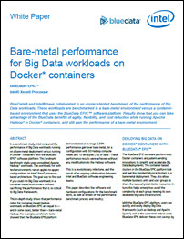 In a benchmark study, Intel compared the performance of Big Data workloads running on a bare-metal deployment versus running in Docker containers with the BlueData EPIC software platform. The study found that it is possible to run Big Data workloads in a container-based environment without sacrificing performance. The benefits include agility, flexibility, and cost efficiency. Data science teams can get on-demand Hadoop and Spark clusters, while leveraging enterprise-grade security in a multi-tenant architecture. Get the white paper to learn about this breakthrough benchmark study.