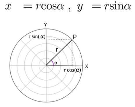 By using polar transformation, we can map the distribution to Cartesian coordinates. Any point over the circle can be described as (X,Y) in terms of Cartesian coordinates, using the trigonometric functions cosine and sine for the translation: