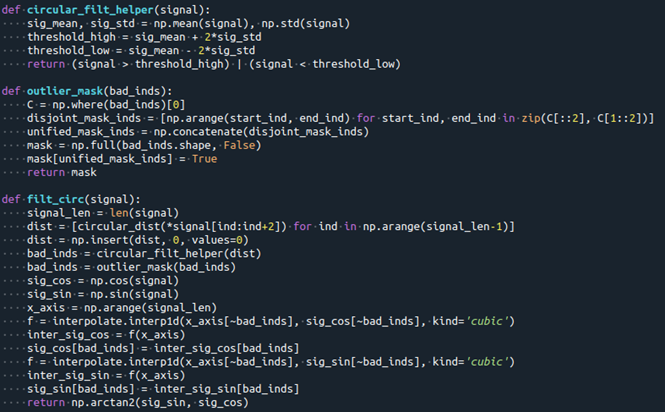 Removing undesirable aspects of a signal is always very important, as it will reduce noise and improve the data quality for better modeling and data inference. Analyzing circular data is tricky, however, analyzing noisy circular data might prove to be quite challenging.