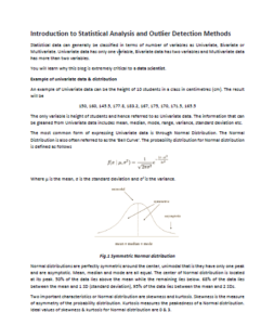 Our friends over at Noah Data have written a research style paper, Introduction to Statistical Analysis and Outlier Detection Methods, that discusses how statistical data can generally be classified in terms of number of variables as Univariate, Bivariate or Multivariate. Univariate data has only one variable, Bivariate data has two variables and Multivariate data has more than two variables.