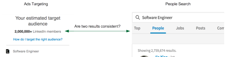 The global identifier scheme allows for knowledge sharing across the entire LinkedIn ecosystem. We build a data-sharing platform as the single source truth to generate and serve the Knowledge Graph. For example, Ads Targeting and People Search both consume data from the same platform. Given a title (“Software Engineer”), the set of LinkedIn members targeted by Ads is the same as the set of LinkedIn members returned by the search engine.