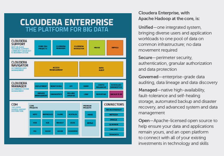 Cloudera created its enterprise distribution of Hadoop (CDH) for this very purpose; to remove the uncertainty and barriers that may dissuade an organization from deploying open source Hadoop into production processes.