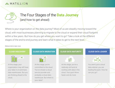 Where is your organization on the data journey? Most of us are steadily moving toward the cloud, with most businesses planning to migrate to the cloud or expand their cloud footprint within a few years. But how do you get where you want to go? In this new whitepaper, our friends over at Matillion, the cloud-native platform for all your data integration, take a look at the different stages of the end-to-end journey and learn what it takes to get to the next level.